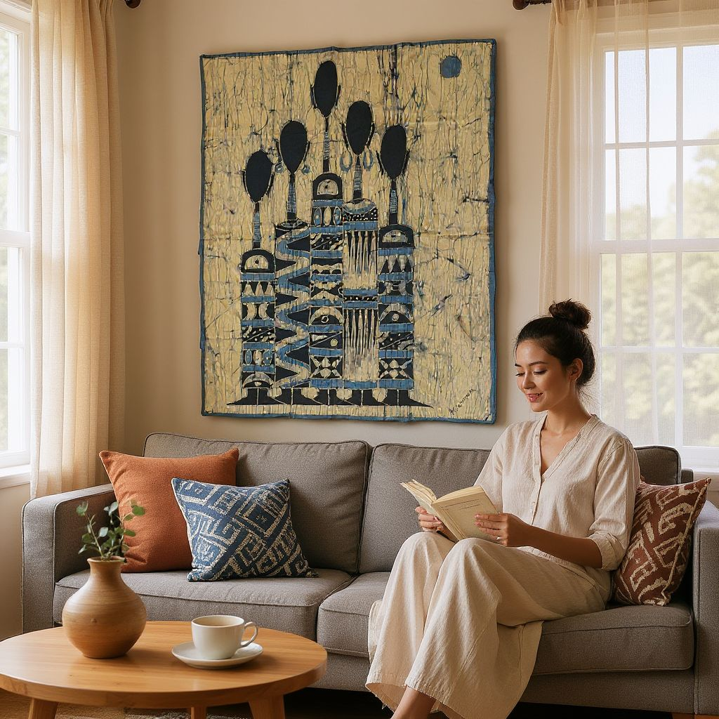 Batik Artisanal "Ma Famille d'amour" - Tableau Coton Pièce Unique