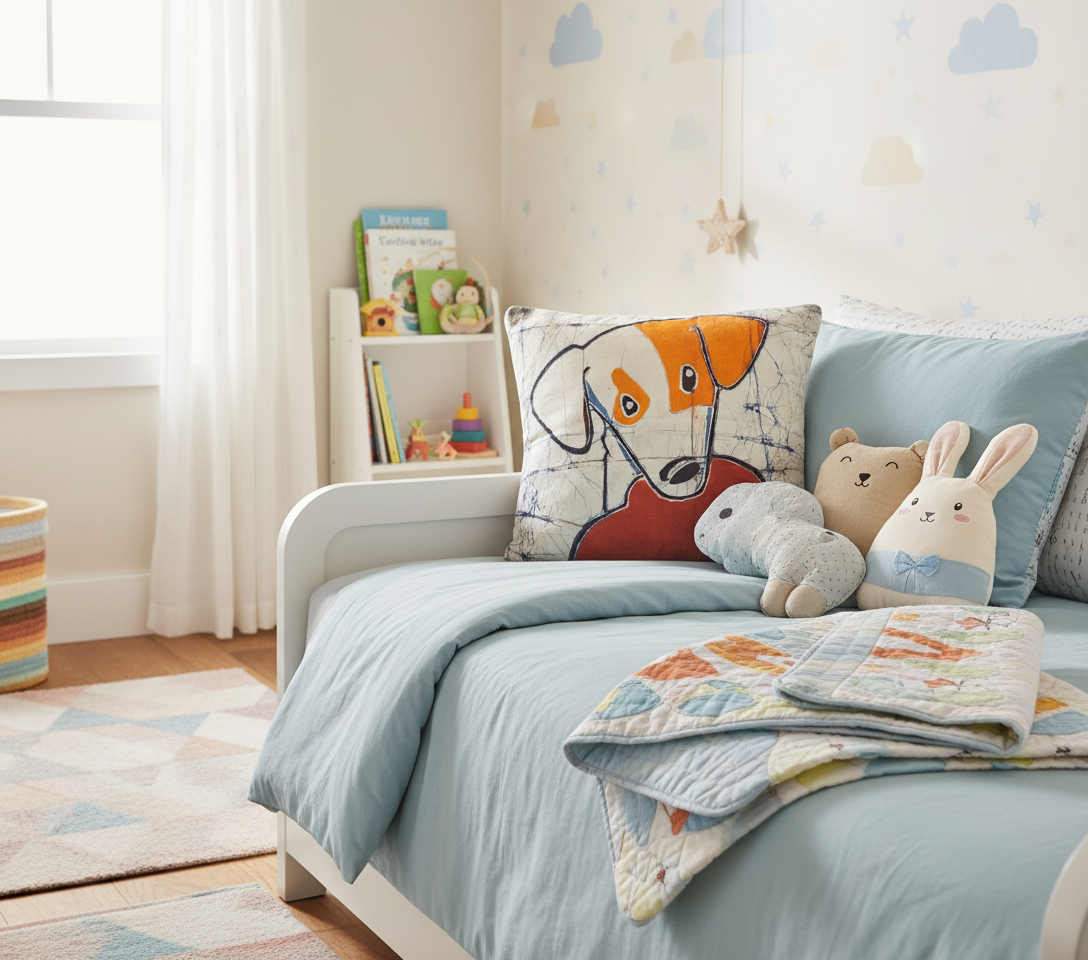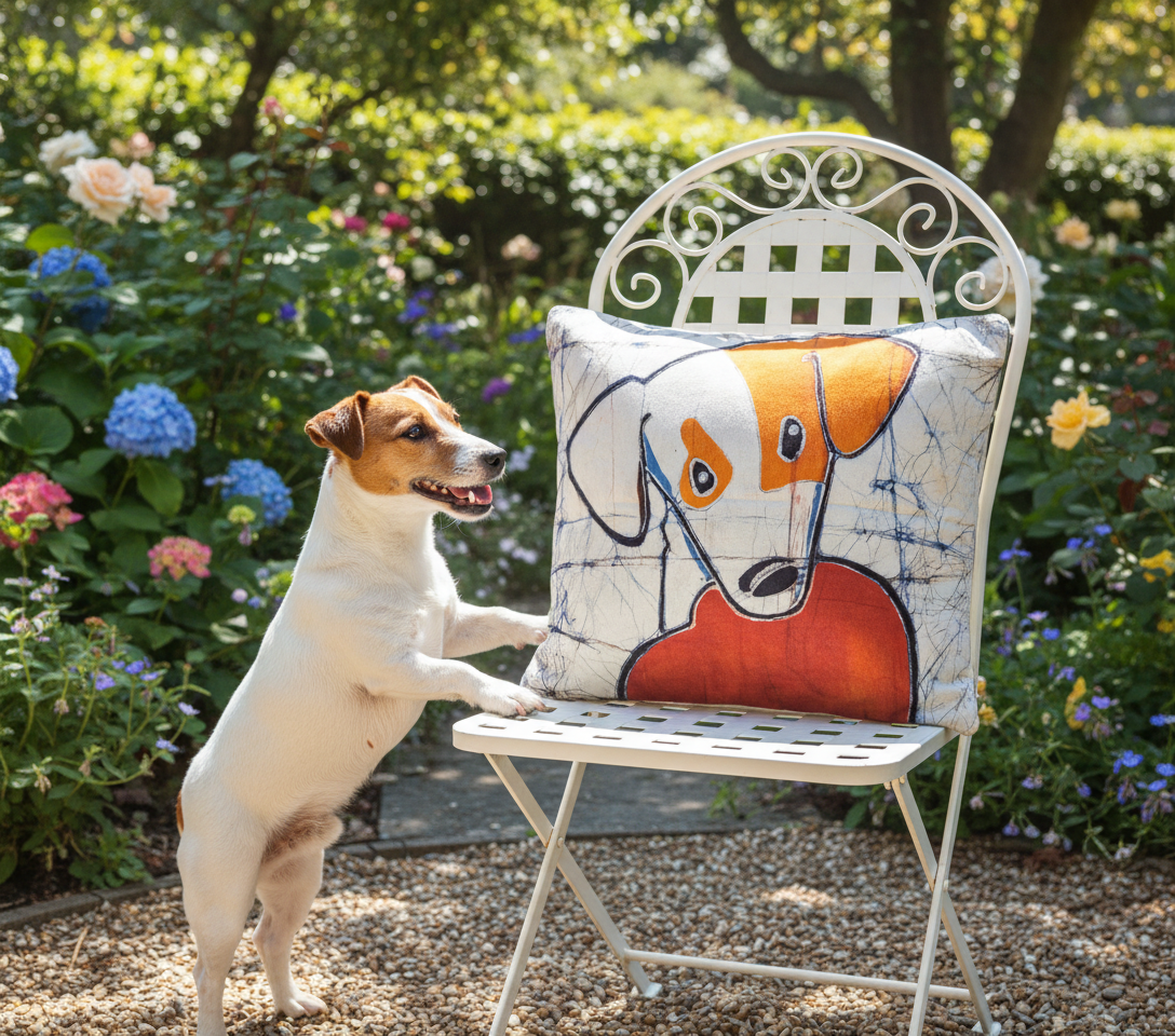 Réalisé à la main selon la technique ancestrale du batik au Burkina Faso, ce petit chien aux couleurs éclatantes célèbre la joie de vivre et l'énergie positive. Idéal dans une chambre d'enfant, sur un canapé lumineux ou au jardin parmi les fleurs, ce coussin diffuse une atmosphère joyeuse et attendrissante. Une pièce originale et pleine de charme, parfaite pour les amoureux des chiens et de la décoration pleine de vie.