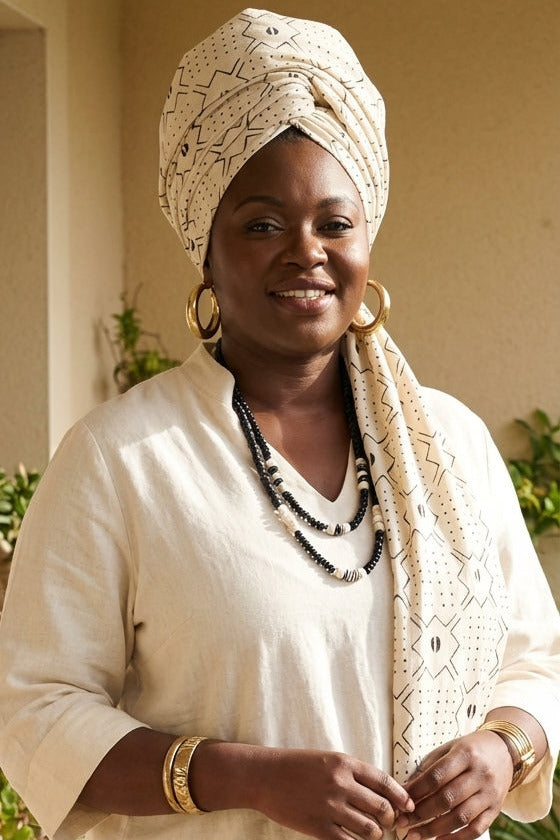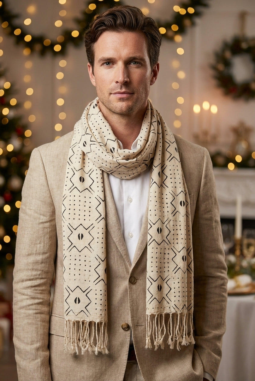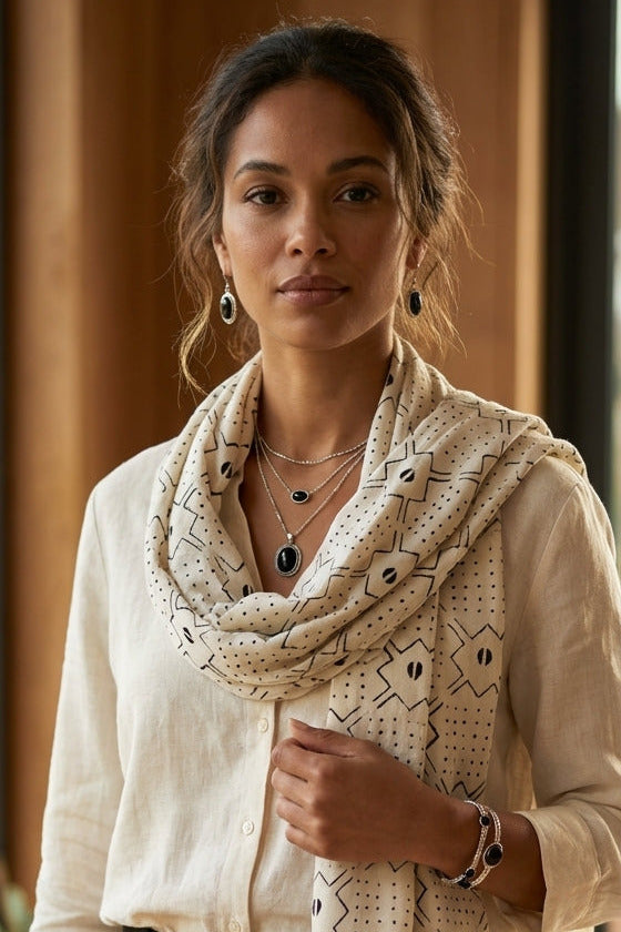 Apportez une touche d’authenticité et de caractère à votre style ou à votre intérieur avec cette écharpe en bogolan traditionnel, réalisée à la main selon un savoir-faire ancestral d’Afrique de l’Ouest.