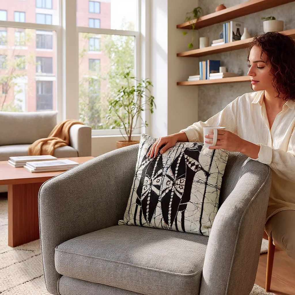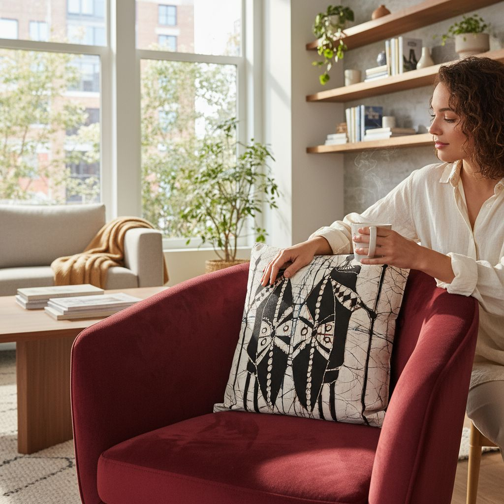 Cette housse de coussin batik apporte une touche de force et de caractère à votre intérieur. Parfaite pour un bureau inspirant, un salon masculin ou un espace de réflexion, elle constitue également un cadeau puissant pour célébrer le courage, honorer les ancêtres ou inspirer la détermination. Ses motifs audacieux s'harmonisent avec une décoration ethnique, contemporaine ou éclectique.
