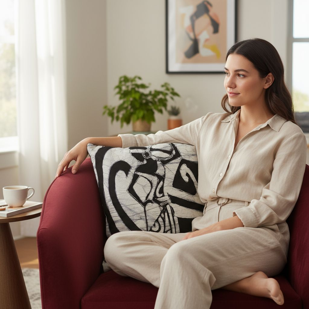 Cette housse de coussin batik apporte une touche d'authenticité et de profondeur culturelle à votre intérieur. Parfaite pour un salon ethnique, un espace de méditation ou une chambre inspirante, elle constitue également un cadeau significatif pour célébrer la force des femmes, honorer les traditions ou simplement apporter une œuvre d'art chargée de sens dans votre décoration.