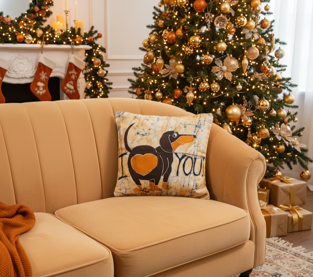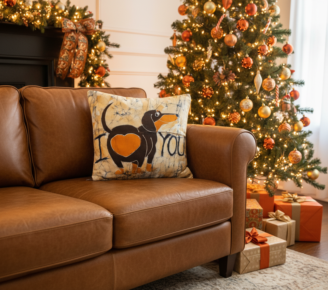 Voici le coussin qui dit tout sans un mot ! Ce teckel adorable, accompagné d'un cœur vibrant, exprime l'amour et la tendresse avec une simplicité touchante. Grâce à ses couleurs douces et ses lignes expressives, ce batik artisanal devient un véritable messager d'émotions.