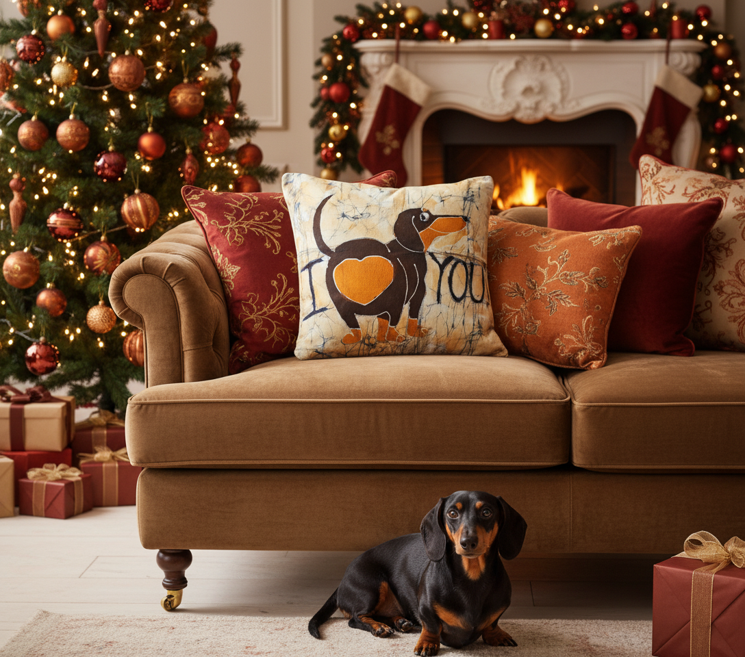 Batik Artisanal "I ❤️ You – Le Teckel qui Dit Tout "- Housse Coton Fait Main