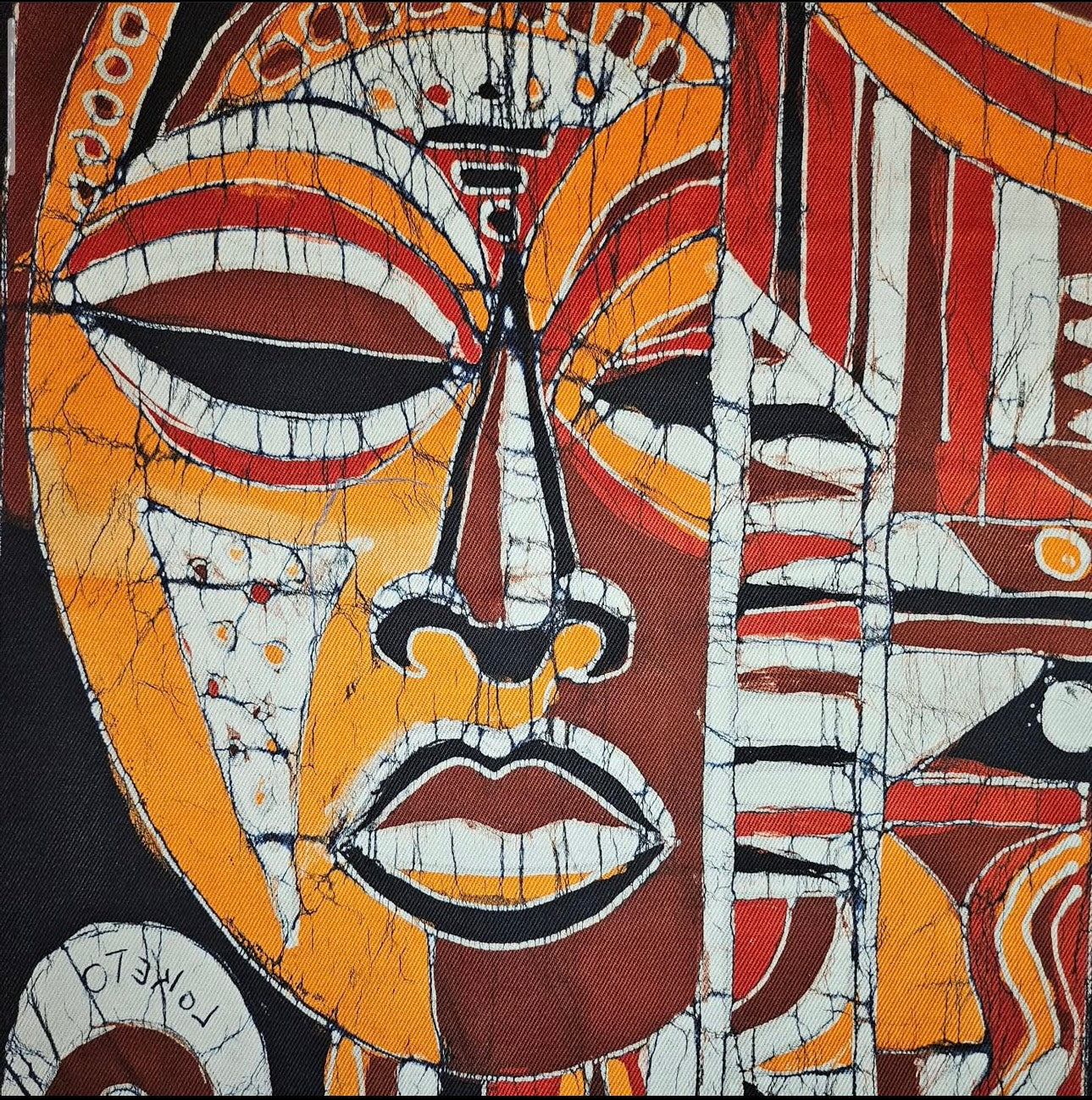 Cette œuvre rend hommage à la dignité tranquille des figures féminines africaines, à la complexité simple d’un visage, aux symboles tissés sur la peau comme des histoires.