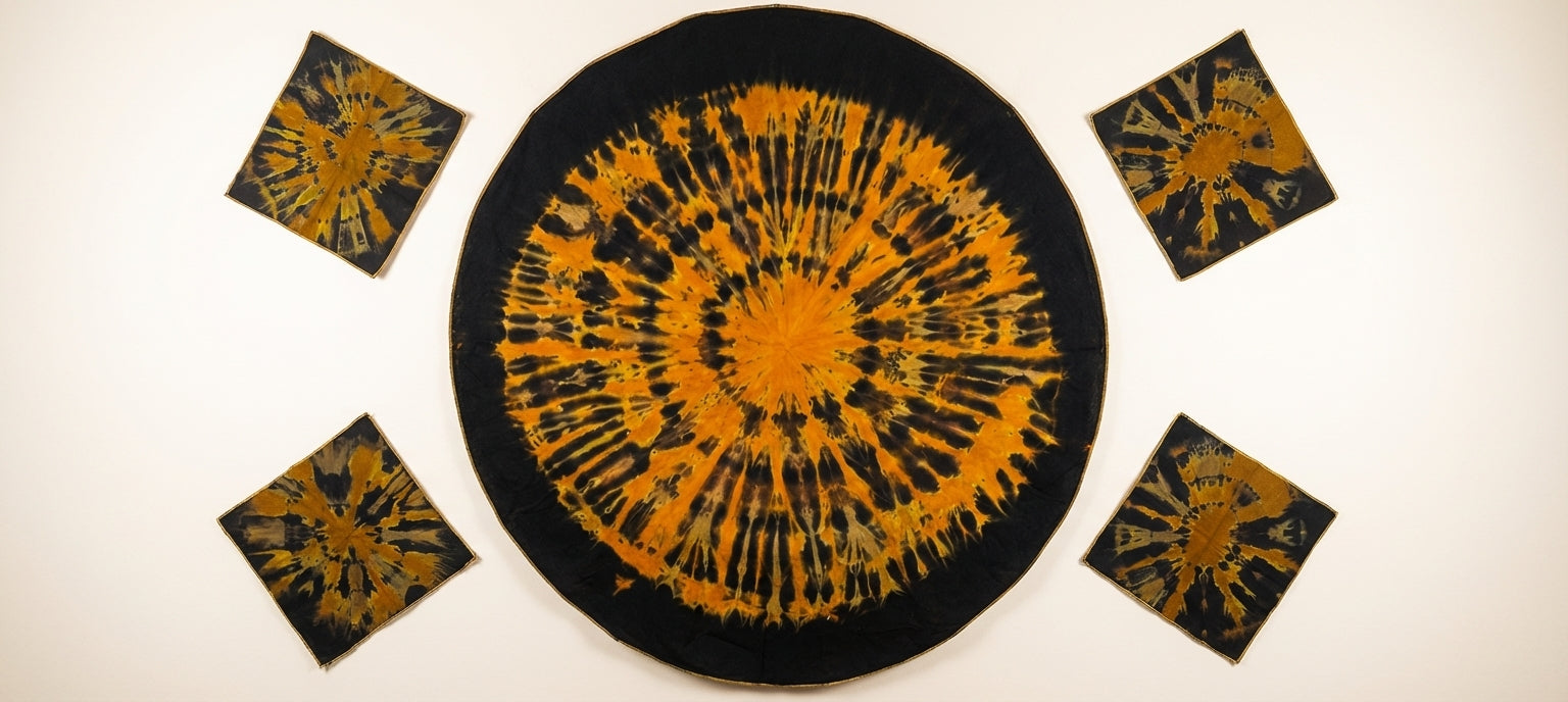Chaque pièce de cette parure – une nappe ronde en coton de 140 cm accompagnée de 4 serviettes coordonnées – a été patiemment teinte à la main selon la technique traditionnelle du Koko Donda, transmise depuis des générations au Burkina Faso.